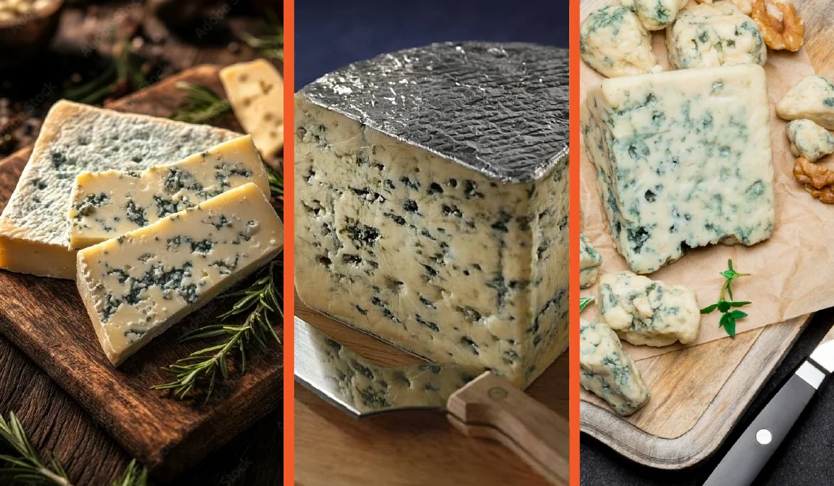 Gorgonzola is a famous Italian blue cheese made from cow’s milk. It has a strong identity, with blue-green mold veins and a sharp, salty flavor.