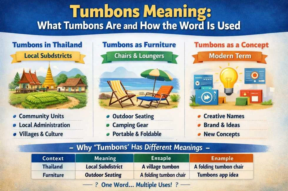 The word tumbons is unusual, flexible, and increasingly visible online. Many people search for it expecting a clear definition, but instead they find mixed explanations. Some sources say tumbons are chairs or outdoor seats. Others describe tumbons as a creative or modern word with no fixed meaning. In some places, the word is used symbolically rather than literally.